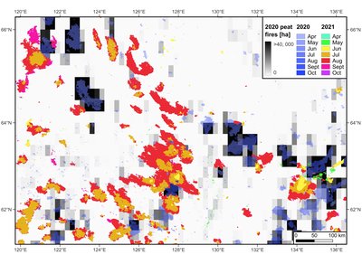 A major contributor to these extensive fires were so called 'zombie fires' – fires from the previous year that survived underground through winter before re-emerging the following spring. After burning into carbon-rich peat soils during the 2020 fire season, these fires smouldered slowly beneath the snow and reignited when conditions warmed in spring 2021.